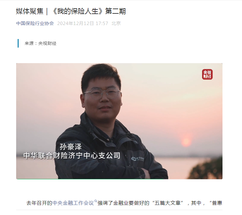 济宁市保险行业协会、中华财险联合推荐作品荣登《我的保险人生》第二期