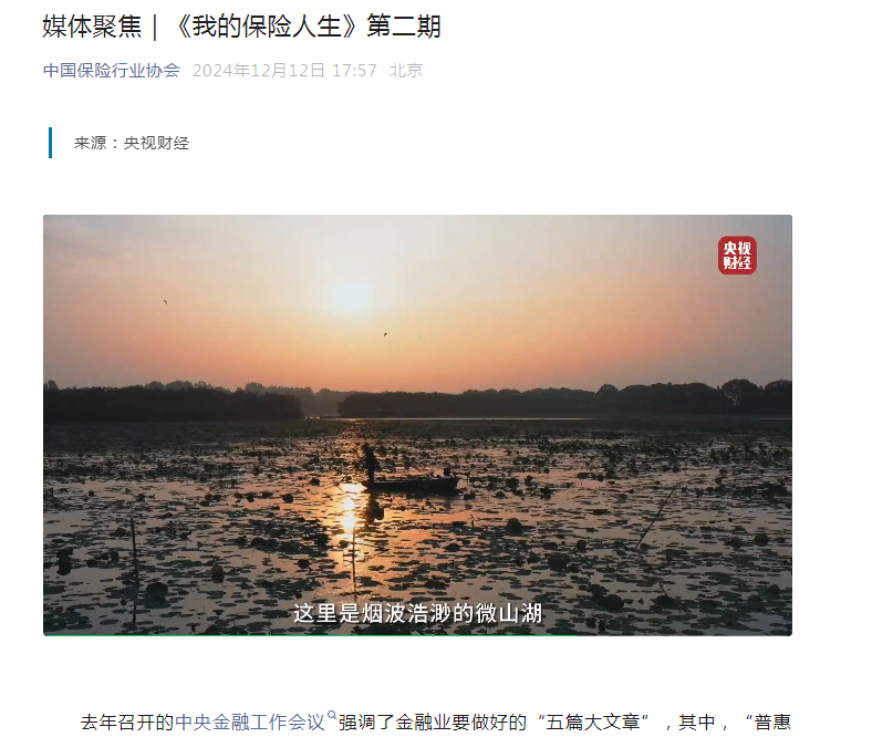 去年召开的中央金融工作会议强调了金融业要做好的“五篇大文章”,其中,“普惠金融”尤其受到行业的重视和大众的关注。作为普惠金融的重要组成部分,近年来,普惠保险围绕保障民生、服务社会,努力为广大民众提供广泛覆盖、公平可得、保费合理、保障有效的保险产品和服务,助力金融强国建设,助推经济高质量发展。保险服务的普惠性都体现在哪里?服务的最后一公里如何打通?一起走进今天的保险人生故事。视频截图: